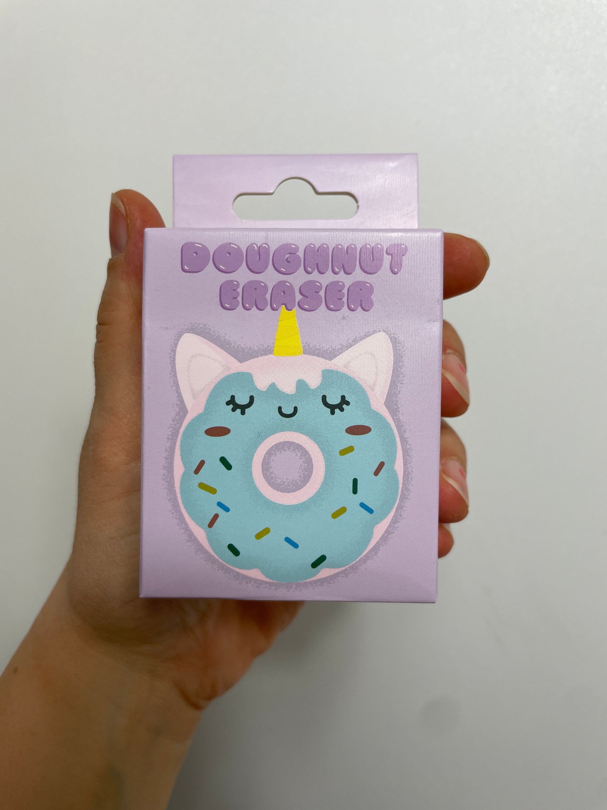 Jumbo-Radiergummi in origineller Doughnut-Form mit niedlichem Einhornmotiv. Ein originelles und originelles Schreibutensil für jedes Etui.